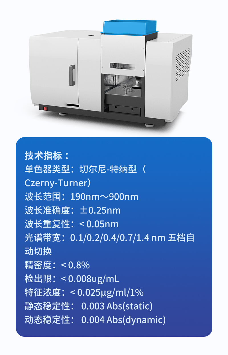 元素?zé)艉碗疅綦p重切換和背景扣除,具備氘燈與自吸收兩種背景校正模式,背景信號 1A 時,扣背景能力 50 倍以上。