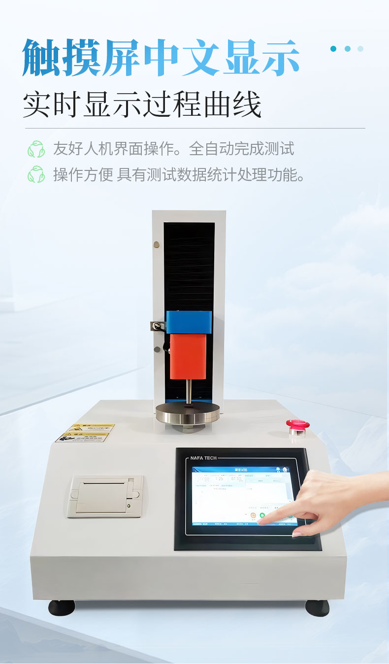 3、大觸摸屏中文顯示(可中英文切換),友好人機(jī)界面操作。全自動(dòng)完成測(cè)試。操作方便,具有測(cè)試數(shù)據(jù)統(tǒng)計(jì)處理功能。