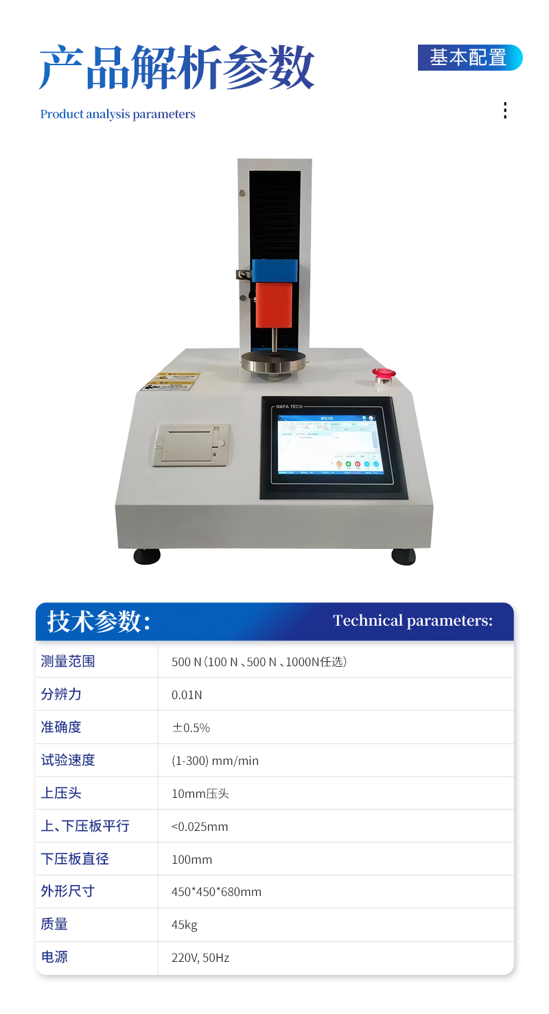 通過對產品進行下壓測試,測定其不同狀態(tài)下壓破強度等項目;從而確認其產品性能.