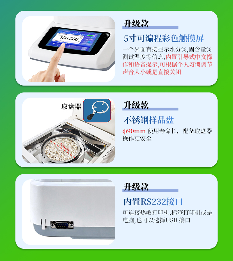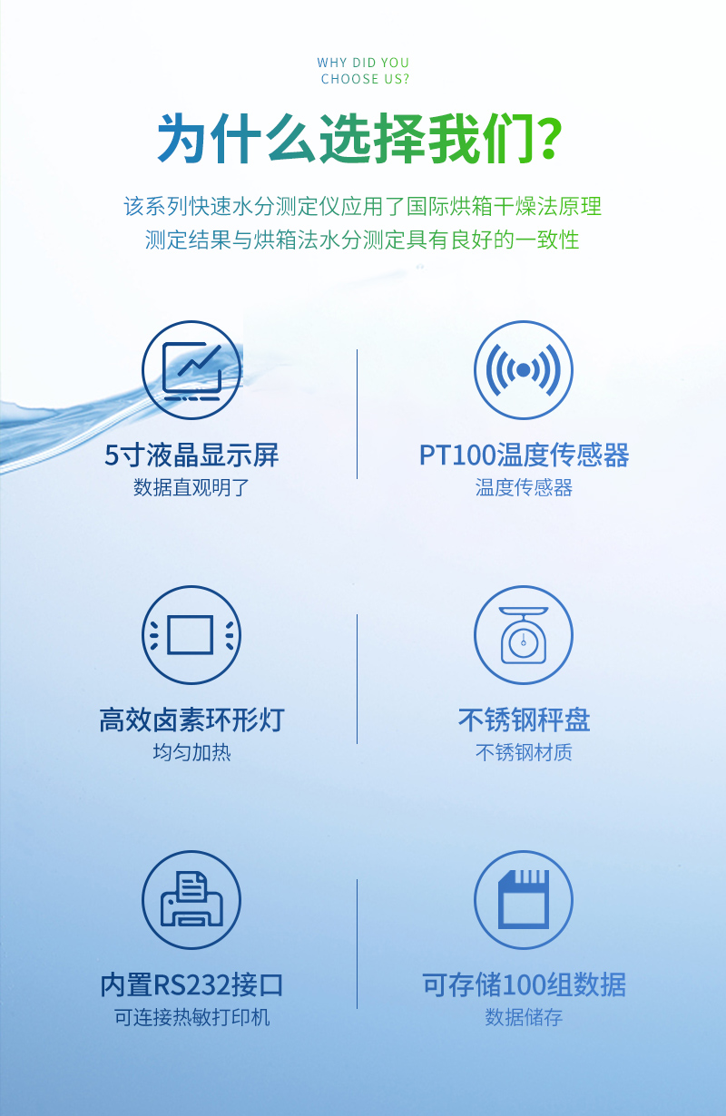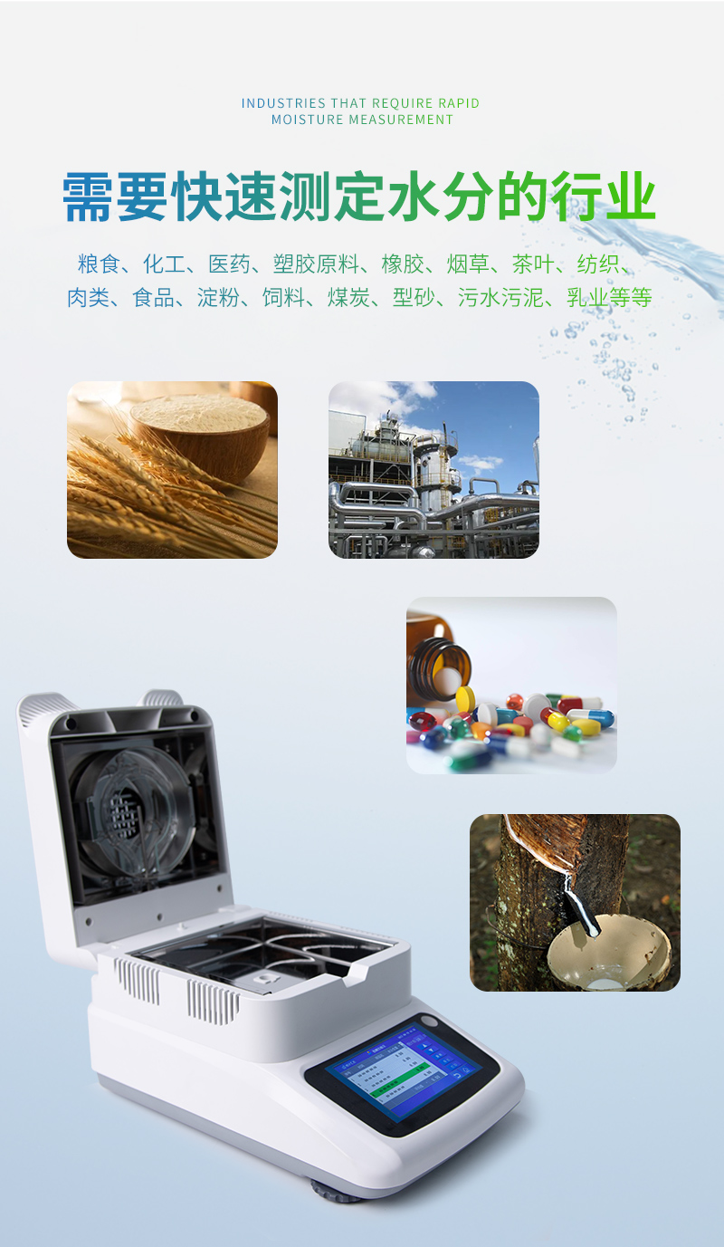 7、用途非常廣泛、幾乎適用各行業(yè)的水分測定;