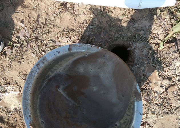 a. 將泥漿慢慢倒入孔洞,大概到孔洞1/2的位置;可根據(jù)實(shí)際情況酌情增減。