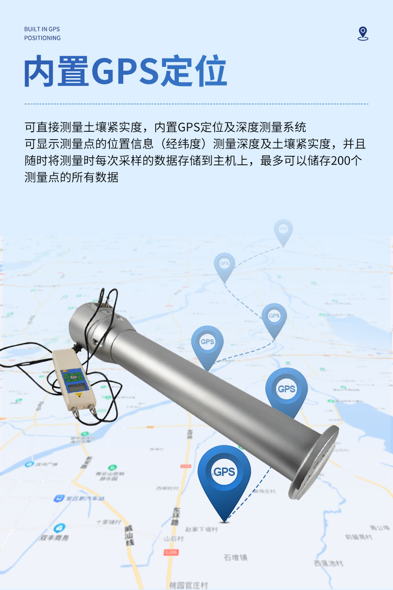 可直接測量土壤緊實度,內(nèi)置GPS定位及深度測量系統(tǒng),可顯示測量點(diǎn)的位置信息(經(jīng)緯度)測量深度及土壤緊實度,并且可以隨時將測量時每次采樣的數(shù)據(jù)存儲到主機(jī)上,*多可以儲存200個測量點(diǎn)的所有數(shù)據(jù)。