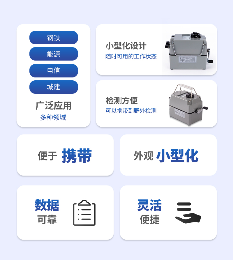 該測試儀根據(jù)土壤腐蝕與防護(hù)野外測試工作多年的經(jīng)驗,將所需要用的三十種五十六個各類儀表、電極、試劑、用具等加以重新設(shè)計和組合,使之小型化,并且處于 隨時可用的工作狀態(tài),組裝在兩只小型測試箱中。便于攜帶到野外,現(xiàn)場完成與土壤腐蝕與防護(hù)有關(guān)的十個項目的分析和測試。方法合理,數(shù)據(jù)可靠,靈活便捷。