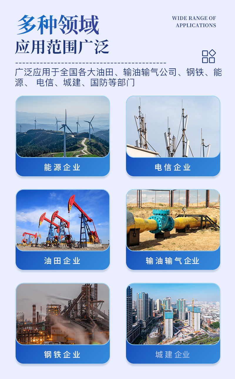 該測試儀適用于材料土壤腐蝕試驗基礎(chǔ)數(shù)據(jù)的測試與積累、土壤腐蝕環(huán)境的勘測,地下金屬構(gòu)件腐蝕狀況的調(diào)查,以及地下輸油輸氣管道及電纜腐蝕穿孔原因的診斷 等。除第二、三兩個項目以外,其余八個項目,也可以用于各野外臺站土壤理化性質(zhì)的原位測定。該儀器已廣泛應(yīng)用于全國各大油田、輸油輸氣公司、鋼鐵、能源、 電信、城建、國防等部門。